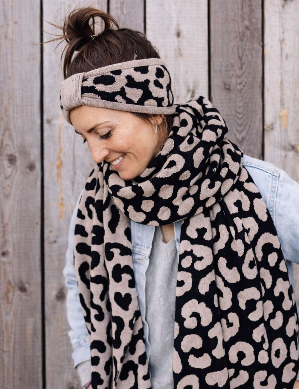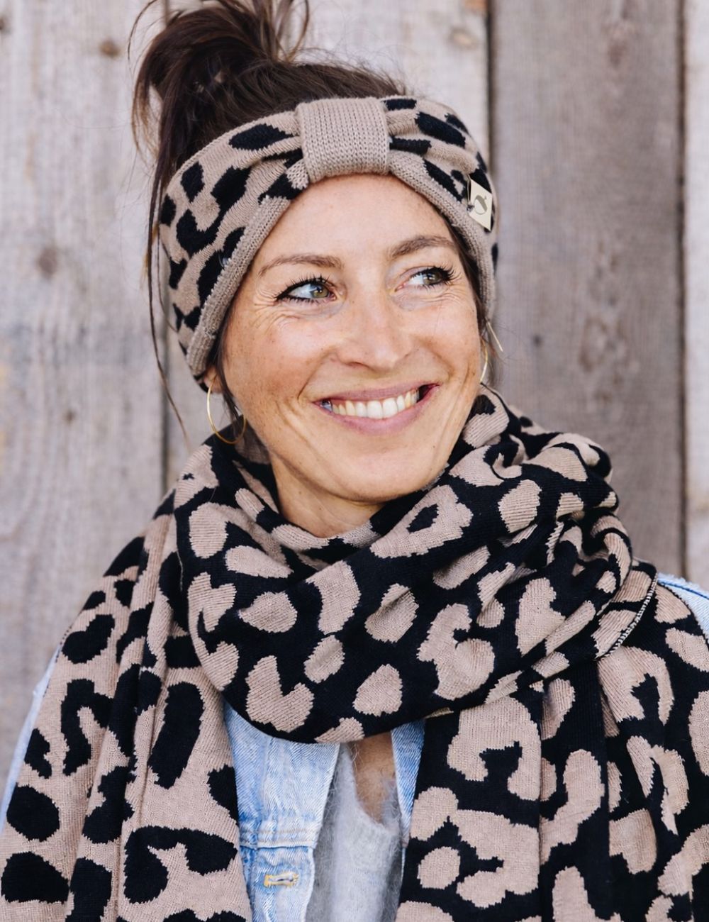 Mit dem Stirnband LEO beige schwarz bist du warm eingepackt und stilvoll unterwegs
